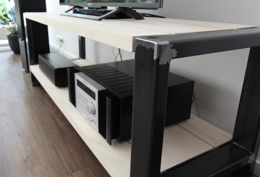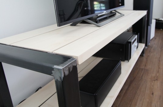 Deshalb hatte ich die Seitenteile und die Verbindungstrassen aus Stahl nach meinen Ideen speziell anfertigen lassen und Ahornbohlen beim Holzhändler gekauft. Ich habe die Bohlen abgelängt, gehobelt und geschliffen.